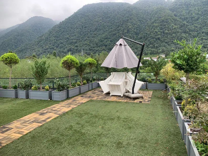 - روفگاردن تکمیلشده با جکوزی و آلاچیق